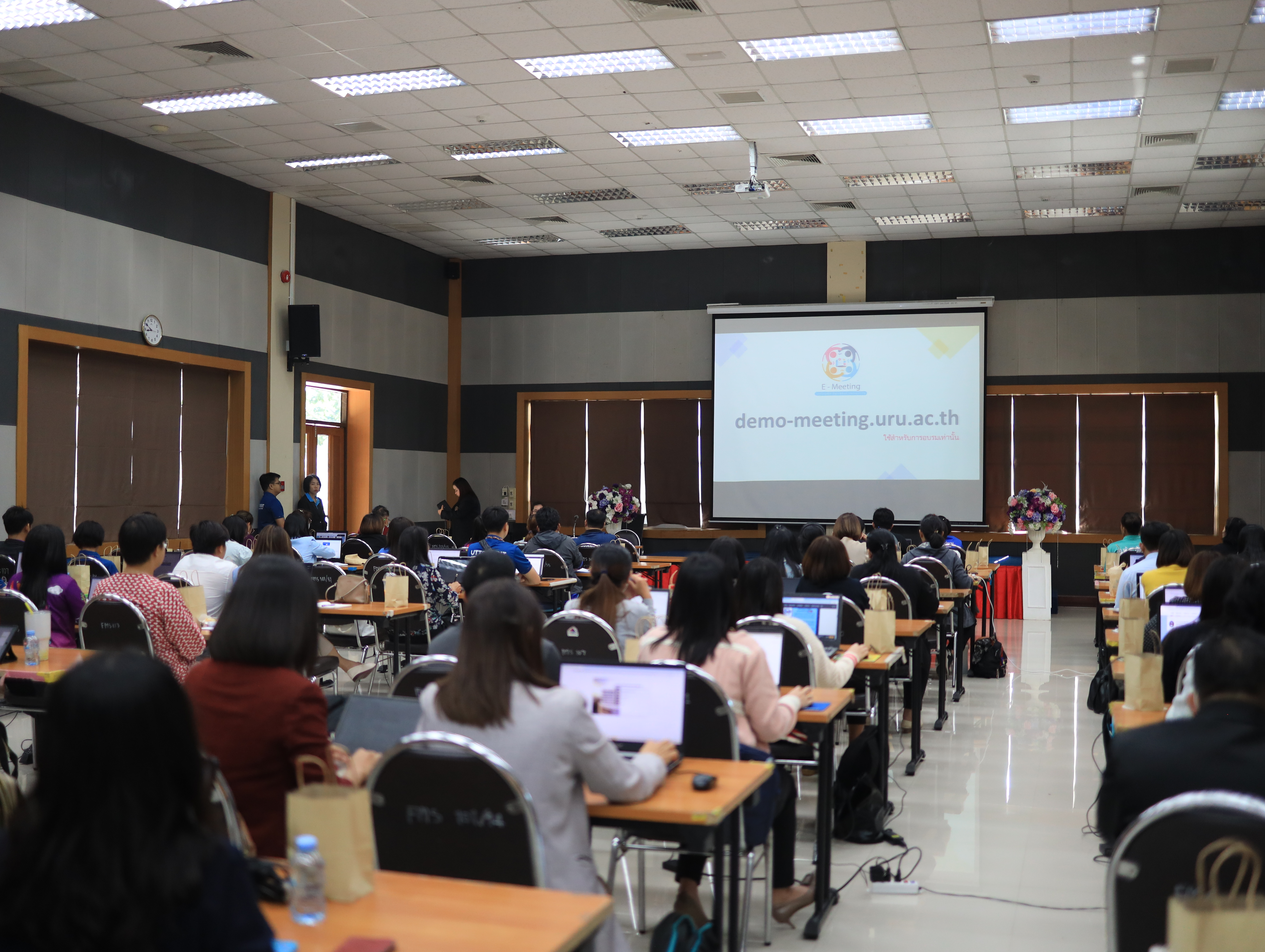 URU NEWS 22 พฤศจิกายน 2566 มหาวิทยาลัยราชภัฏอุตรดิตถ์ โดยสำนักวิทยบริการและเทคโนโลยีสารสนเทศ จัดโครงการฝึกอบรมเชิงปฏิบัติการ การใช้งานระบบจัดการเอกสารการประชุมอิเล็กทรอนิกส์ มหาวิทยาลัยราชภัฏอุตรดิตถ์ (E–Meeting) ได้รับเกียรติจาก รองศาสตราจารย์ ดร.เจษฎา มิ่งฉาย รองอธิการบดี เป็นประธานในการเปิดงาน และมีอาจารย์ ดร.พิสุทธิ์ ศรีจันทร์ ผู้อำนวยการสำนักวิทยบริการฯ กล่าวรายงานวัตถุประสงค์การจัดโครงการ ทั้งนี้ เพื่อสร้างความรู้ ความเข้าใจให้กับบุคลากรเกี่ยวกับการใช้งานระบบจัดการเอกสารการประชุมอิเล็กทรอนิกส์ มหาวิทยาลัยราชภัฏอุตรดิตถ์ (E–Meeting) ในเรื่องของการเตรียมวาระการประชุม การจัดการผู้เข้าร่วมประชุม การสร้างรายงานการประชุม การตรวจสอบและรับรองการประชุม การค้นหาบันทึกการประชุมย้อนหลัง การแนบเอกสารประกอบการประชุมให้ผู้เข้าประชุมรับทราบก่อนและหลังการประชุม ผ่านทางหน้าจอคอมพิวเตอร์ และทุกอุปกรณ์สื่อสารได้ มีผู้เข้าร่วมโครงการ จำนวน 100 คน ประกอบด้วย บุคลากรจาก คณะ/ศูนย์/สำนัก ภายในมหาวิทยาลัย ณ ห้องประชุม FMS 101 คณะวิทยาการจัดการ มหาวิทยาลัยราชภัฏอุตรดิตถ์ PR.URU