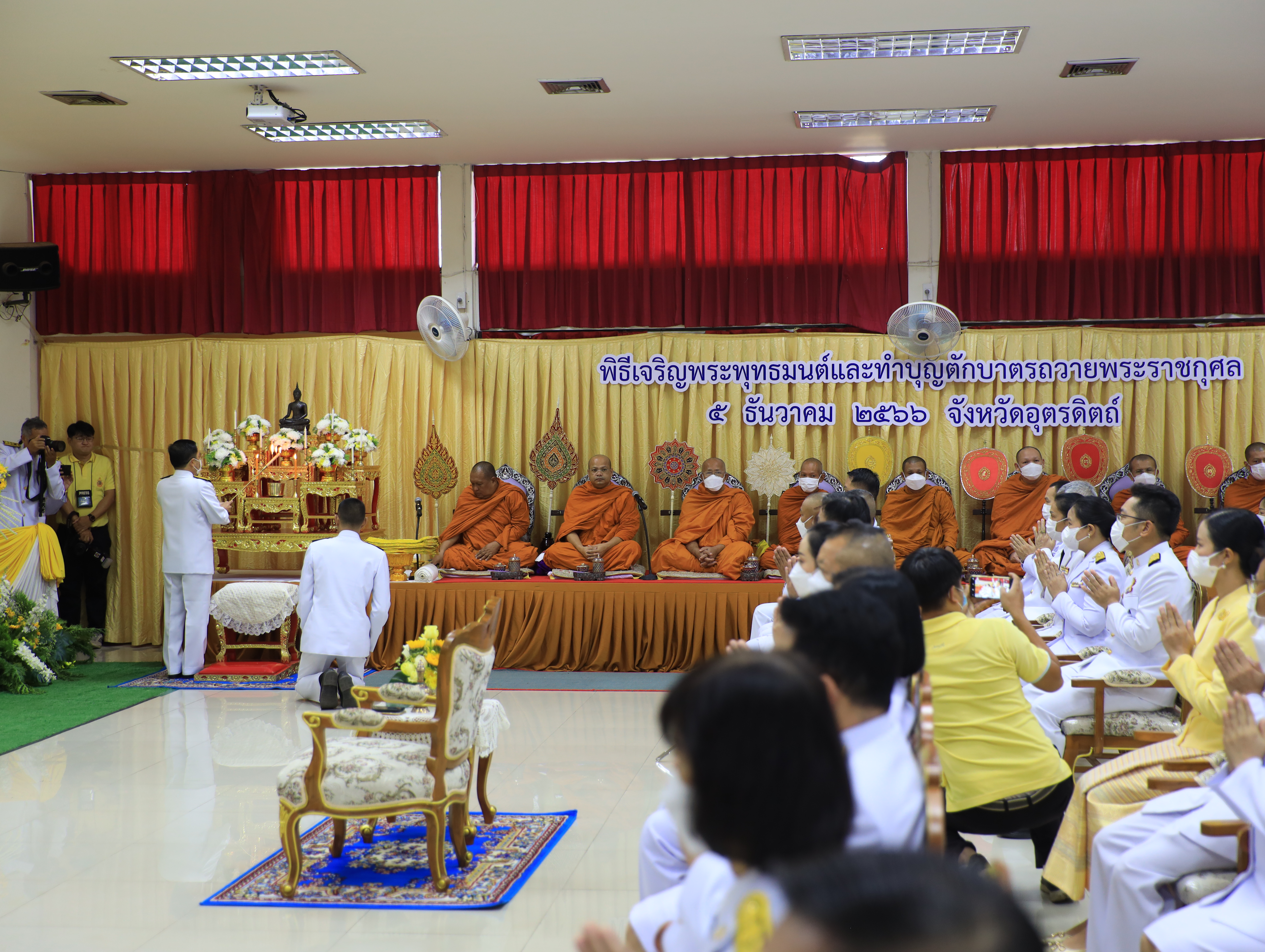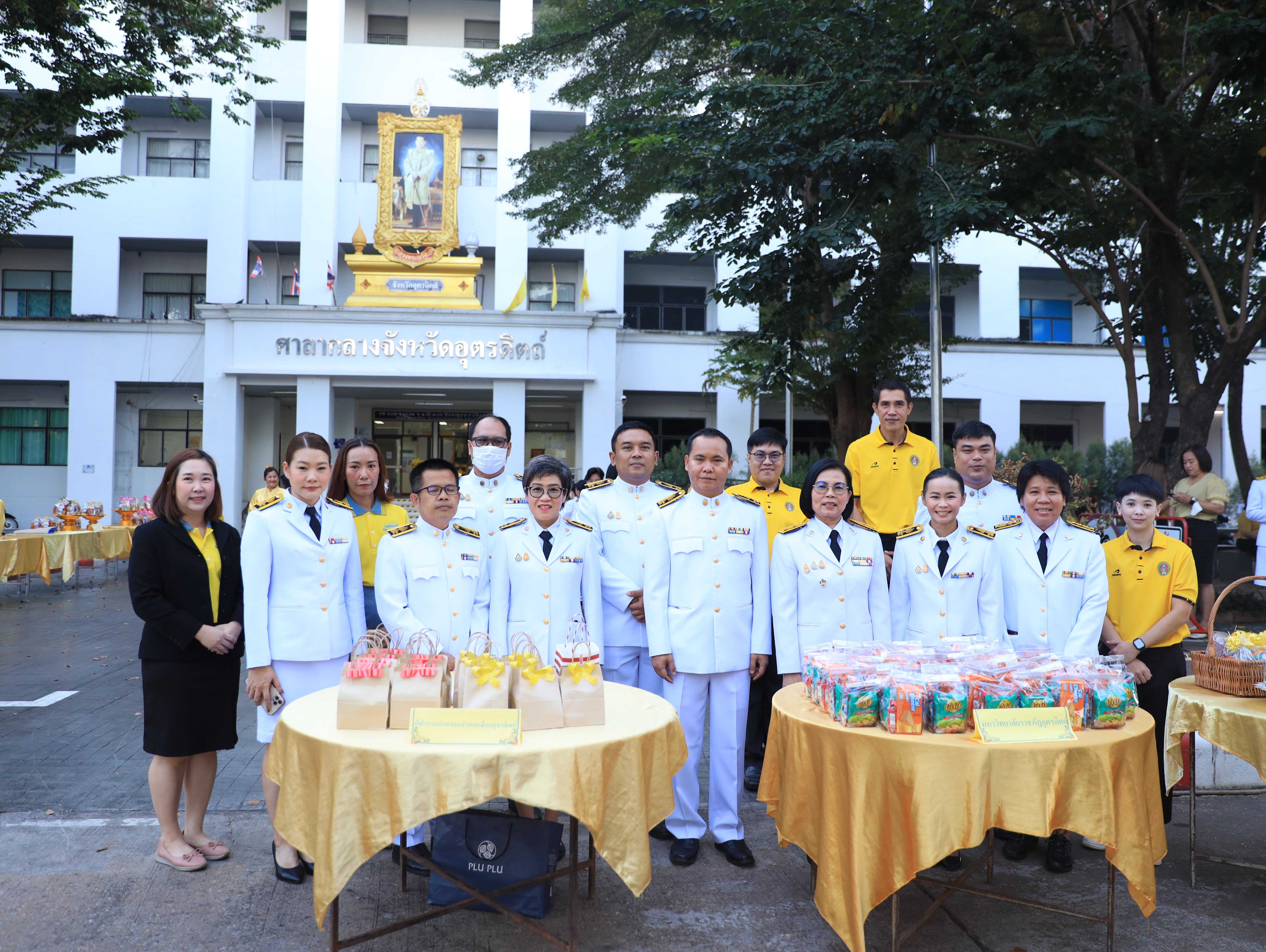 วันที่ 5 ธันวาคม 2566 มหาวิทยาลัยราชภัฏอุตรดิตถ์ นำโดย รศ.ดร.สุภาวิณี สัตยาภรณ์ อธิการบดี ผู้บริหาร คณาจารย์ บุคลากรเจ้าหน้าที่ และนักศึกษา ร่วมงานวันคล้ายวันพระบรมราชสมภพ พระบาทสมเด็จพระบรมชนกาธิเบศร มหาภูมิพลอดุลยเดชมหาราช บรมนาถบพิตร วันชาติ และวันพ่อแห่งชาติ ประจำปี 2566 ณ บริเวณศาลาประชาคมจังหวัดอุตรดิตถ์ และภายใจงานจัดพิธีทำบุญตักบาตรข้าวสารอาหารแห้ง พระสงฆ์ จำนวน 89 รูป ณ บริเวณศาลาประชาคมจังหวัดอุตรดิตถ์และพิธีวางพานพุ่มดอกไม้สด และพิธีถวายบังคม (ต่อเนื่องจากกิจกรรมทำบุญตักบาตร) ณ บริเวณศาลาประชาคมจังหวัดอุตรดิตถ์ โดยมี นายนพฤทธิ์ ศิริโกศล รองผู้ว่าราชการจังหวัดอุตรดิตถ์ รักษาราชการแทนผู้ว่าราชการจังหวัดอุตรดิตถ์ เป็นประธานในพิธีครั้งนี้ ภาพ/ข่าว PR URU