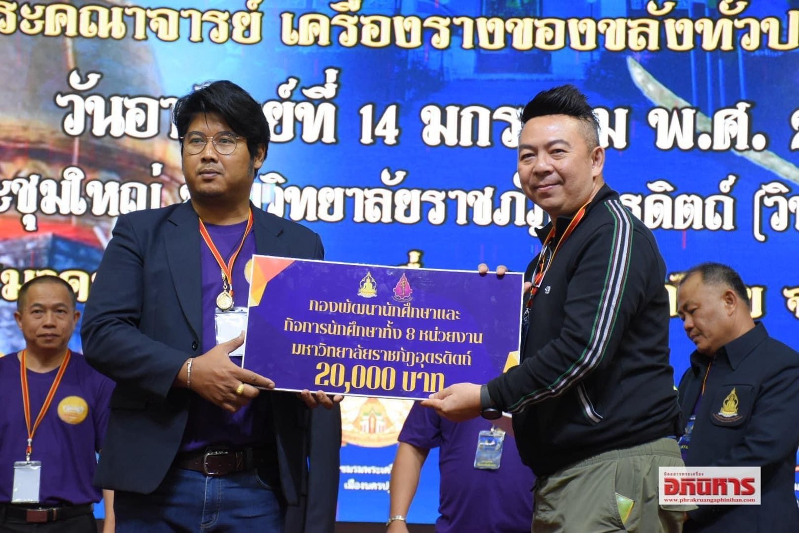 วันที่ 14 มกราคม 2567 นายศิริวัฒน์ บุปผาเจริญ ผู้ว่าราชการจังหวัดอุตรดิตถ์ เป็นประธานกล่าวเปิดงานมหกรรมการประกวดการอนุรักษ์พระบูชา พระเครื่อง เหรียญคณาจารย์ ทั่วประเทศ ครั้งที่ 12 โดยมี รศ.ดร.กันต์ อินทุวงศ์ คณะบดีคณะเทคโนโลยีอุตสาหกรรม มหาวิทยาลัยราชภัฏอุตรดิตถ์ ประธานจัดงาน กล่าวรายงานวัตถุประสงค์ ณ หอประชุมใหญ่ มหาวิทยาลัยราชภัฏอุตรดิตถ์(วิทยาเขตทุ่งกะโล่) ทั้งนี้ สมาคมผู้นิยมพระเครื่องพระบูชาไทย จังหวัดอตรดิตถ์ ได้มอบเงินกองทุนช่วยเหลือสมาชิกสมาคมฯ จำนวน 300,000 บาท มอบเงินเข้าโครงการช่วยเหลือเด็กนักเรียนผู้ด้อยโอกาส 30,000 บาท สนับสนุนสภาวัฒนธรรมจังหวัดอุตรดิตถ์ 20,000 บาท โดยมี คุณศิริวัฒน์ บุปผาเจริญ ผู้ว่าราชการจังหวัดอุตรดิตถ์ เป็นตัวแทนมอบ และมอบเงินสนับสนุนกองพัฒนานักศึกษา และกองกิจการนักศึกษา มหาวิทยาลัยราชภัฎอุตรดิตถ์ 20,000 บาท มอบทุนการศึกษาให้ ด.ช.สุกฤษฎิ์ ศรีปานอินทร์ 72,000 บาท ภาพ/ข่าว สมาคมผู้นิยมพระเครื่องพระบูชาไทย จังหวัดอุตรดิตถ์