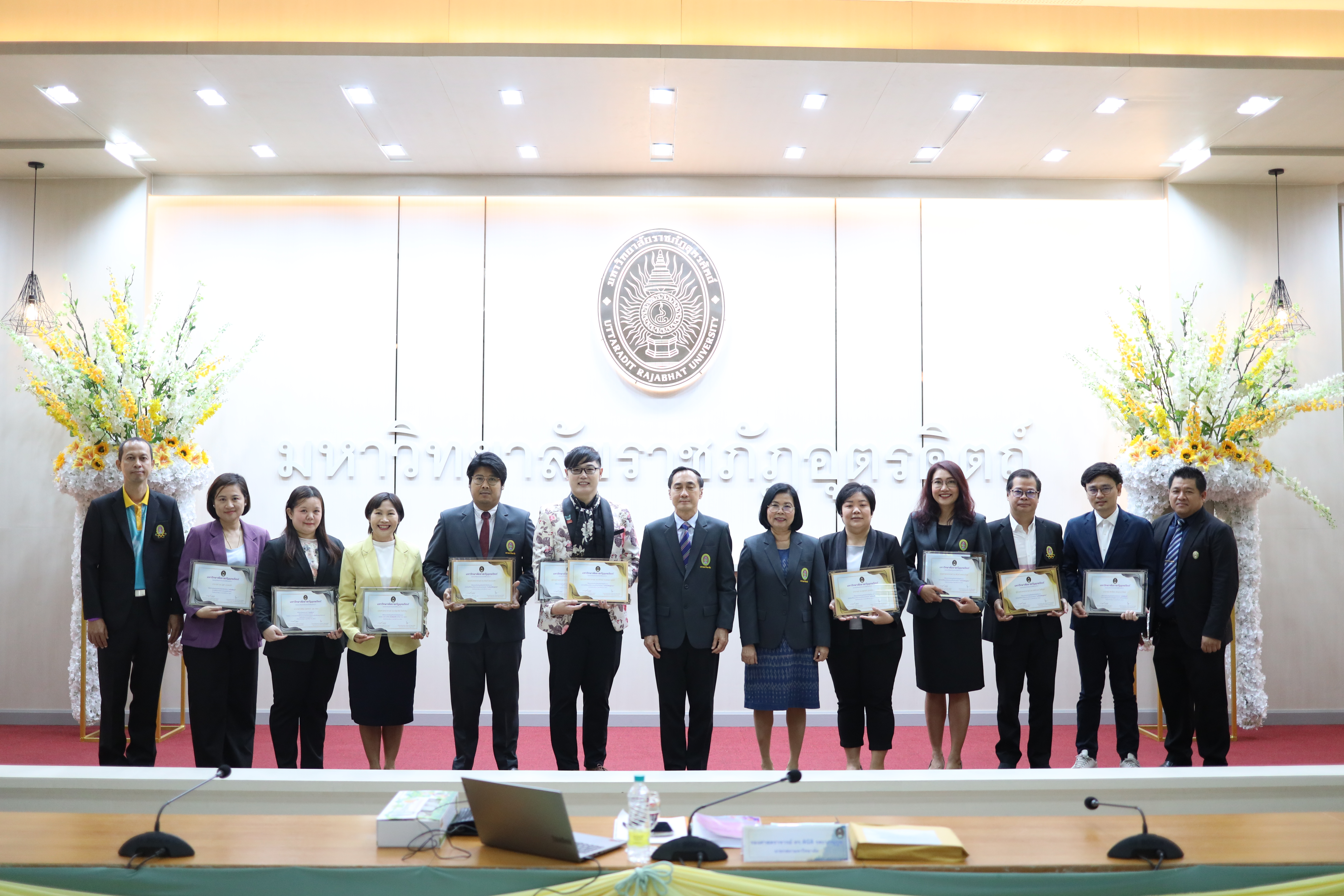 สถาบันวิจัยและพัฒนา โดย ผศ.ดร.กิตติ เมืองตุ้ม ผู้อำนวยการสถาบันวิจัยและพัฒนา จัดพิธีมอบรางวัลเชิดชูเกียรตินักวิจัยต้นแบบ นักวิจัยดีเด่น ผลงานวิจัยดีเด่นมหาวิทยาลัยราชภัฏอุตรดิตถ์ เนื่องใน "วันราชภัฏ 14 กุมภาพันธ์" ประจำปี 2567 ซึ่งมีนักวิจัยที่ผ่านการคัดเลือก เข้ารับมอบรางวัลจาก รศ.ดร.พินิติ รตะนานุกูล นายกสภามหาวิทยาลัย และมี รศ.ดร.สุภาวิณี สัตยาภรณ์ อธิการบดี กรรมการสภามหาวิทยาลัยผู้ทรงคุณวุฒิ ผู้บริหาร คณบดี ร่วมแสดงความยินดี ณ ห้องประชุมสภามหาวิทยาลัย ( พิชัยสงคราม ) อาคาร ICIT