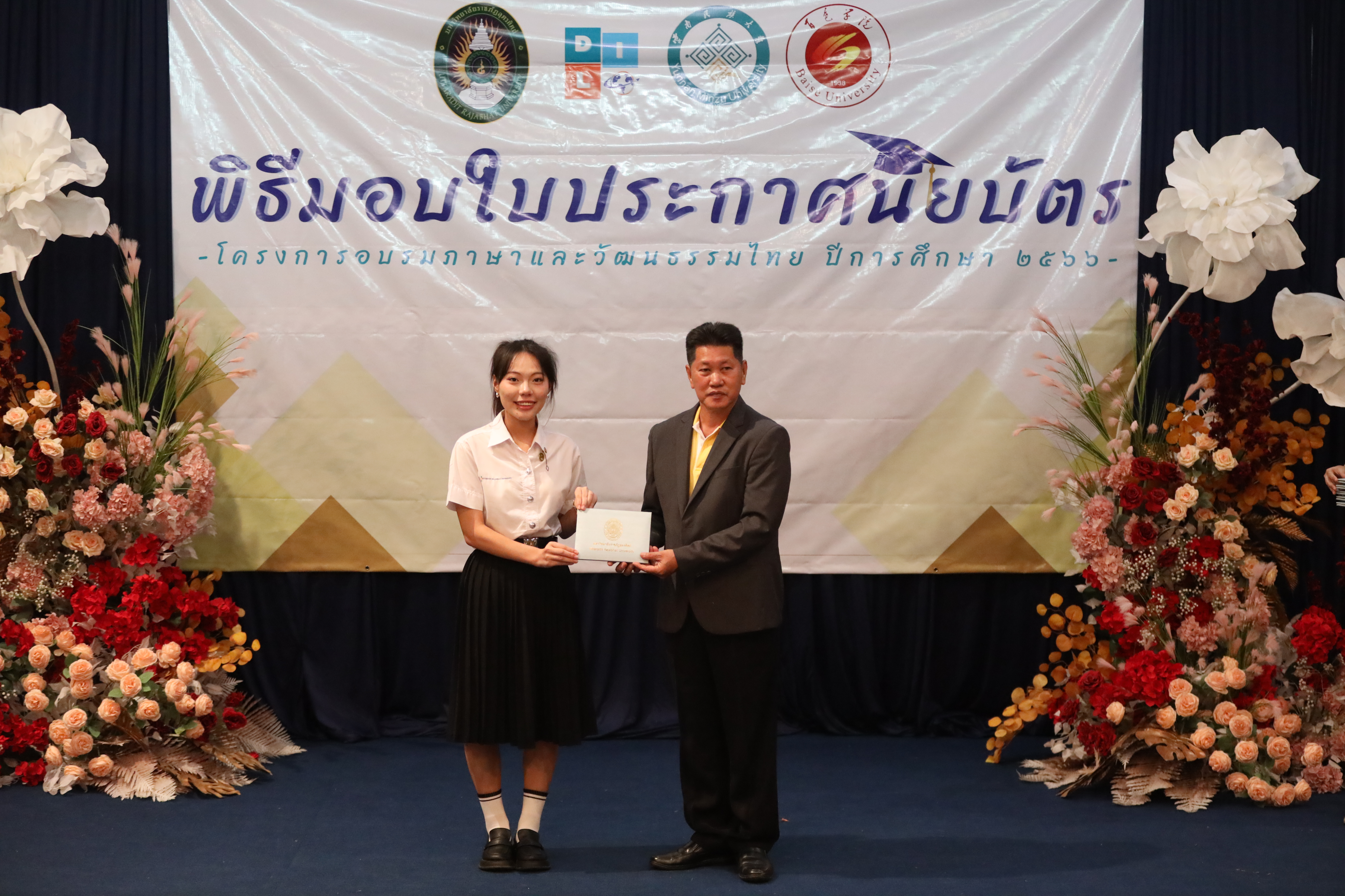 วันที่ 10 มิถุนายน 2567 งานวิเทศสัมพันธ์และพัฒนาภาษาต่างประเทศ นำโดย ผศ.ดร.ศิวัฒม์ กมลคุณานนท์ ผู้ช่วยอธิการบดี จัดโครงการพิธีมอบประกาศนียบัตรนักศึกษาจีน : ภายใต้โครงการอบรมภาษาและวัฒนธรรมไทย (กลุ่ม ม.ชนชาติยูนนาน) โครงการอบรมภาษาและวัฒนธรรมไทย (กลุ่ม ม.ไป่เซ่อ)และโครงการหลักสูตรภาษาและวัฒนธรรมเข้มข้นสำหรับชาวต่างชาติ ( Intensive Thai Culture & Language for Foreigner) เพื่อแสดงความยินดีที่นักศึกษาสำเร็จการศึกษาในครั้งนี้ โดยมี ผศ.ธนัตถา กรพิทักษ์ รองอธิการบดีมหาวิทยาลัยราชภัฏอุตรดิตถ์ เป็นประธานในการมอบประกาศนียบัตร ภาพ/ข่าว PR URU