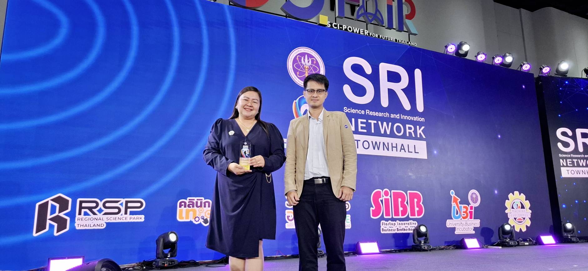 วันพฤหัสบดีที่ 25 กรกฎาคม 2567 รองศาสตราจารย์ ดร.สุภาวิณี สัตยาภรณ์ อธิการบดีมหาวิทยาลัยราชภัฏอุตรดิตถ์ มอบหมายให้ผู้ช่วยศาสตราจารย์ ดร.รัชดา คำจริง ผู้ช่วยอธิการบดีมหาวิทยาลัยราชภัฏอุตรดิตถ์ เข้ารับโล่ SRI ENGAGEMENT NETWORK สำหรับหน่วยงานที่ร่วมดำเนินภารกิจเพื่อส่งเสริมการใช้ประโยชน์ทางวิทยาศาสตร์ วิจัยและนวัตกรรม แก่หน่วยงาน จำนวน 98 แห่ง โดยได้รับเกียรติจาก ศาสตราจารย์ศุภชัย ปทุมนากุล รองปลัดกระทรวงการอุดมศึกษา วิทยาศาสตร์ วิจัย และนวัตกรรมเป็นประธานในพิธีเปิดและมอบโล่ โดยนายเอกพงศ์ มุสิกะเจริญ ผู้อำนวยการกองส่งเสริมและประสานเพื่อประโยชน์ทางวิทยาศาสตร์ วิจัย และนวัตกรรม กล่าวรายงาน ภายในงาน อว.แฟร์ : SCI POWER FOR FUTURE THAILAND ณ ศูนย์ประชุมแห่งชาติสิริกิติ์ กรุงเทพมหานคร รวมทั้ง ผู้ช่วยศาสตราจารย์ ดร.รัชดา คำจริง ผู้ช่วยอธิการบดี และ ผู้ช่วยศาสตราจารย์ ดร.อำนาจ ตงติ๊บ รองผู้อำนวยการศูนย์วิทยาศาสตร์และเทคโนโลยี ได้เข้าร่วมประชุมเครือข่ายส่งเสริมการใช้ประโยชน์ทางวิทยาศาสตร์ วิจัย และนวัตกรรม Science Research and Innovation (SRI) Network Townhall แนวทางการดำเนินงานเครือข่ายคลินิกเทคโนโลยี และโครงการพัฒนาผลิตภัณฑ์สินค้าชุมชน (คูปองวิทย์เพื่อโอทอป) ประจำปีงบประมาณ พ.ศ.2568 จัดโดยสำนักงานปลัดกระทรวงการอุดมศึกษา วิทยาศาสตร์ วิจัยและนวัตกรรม
