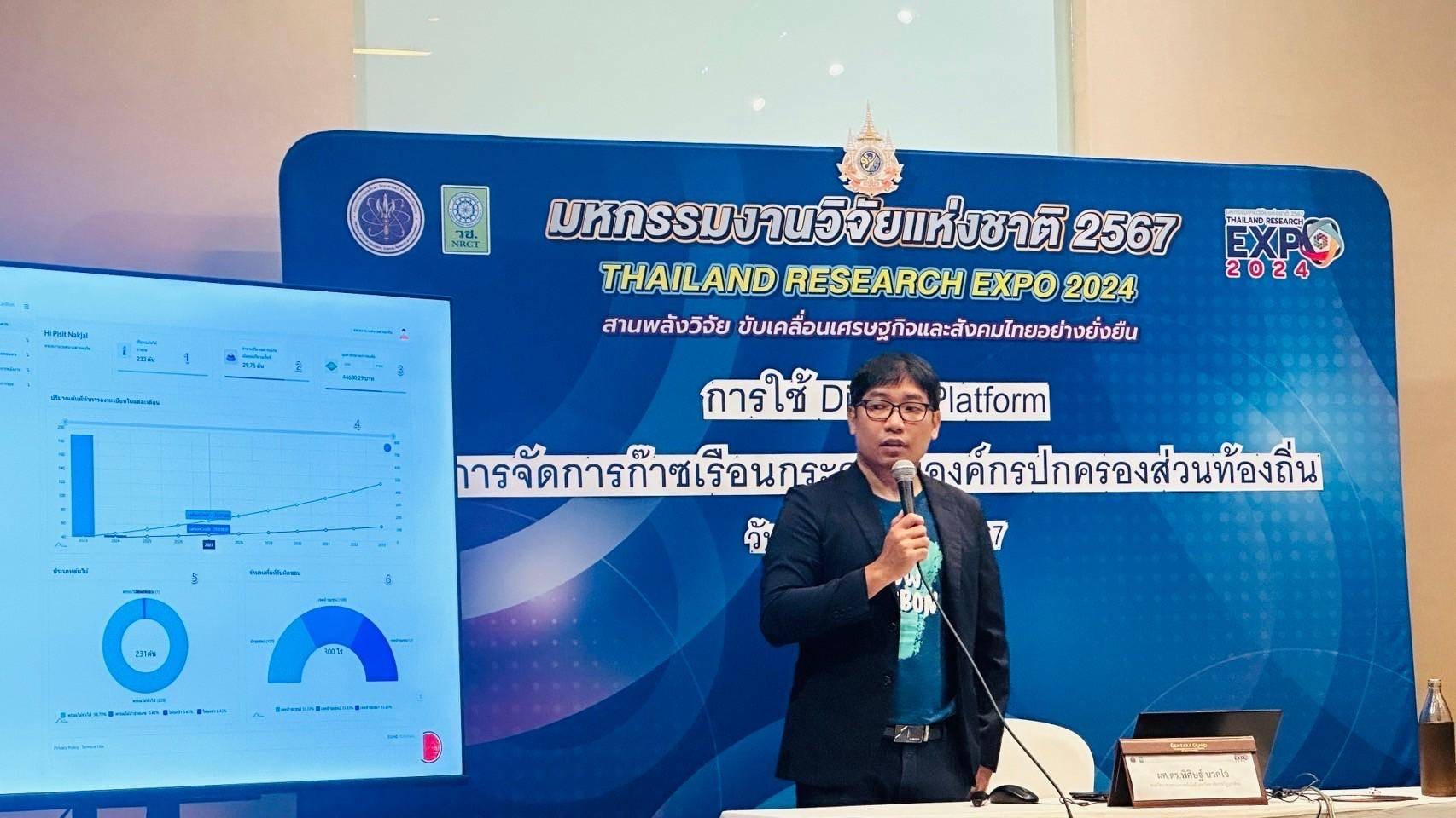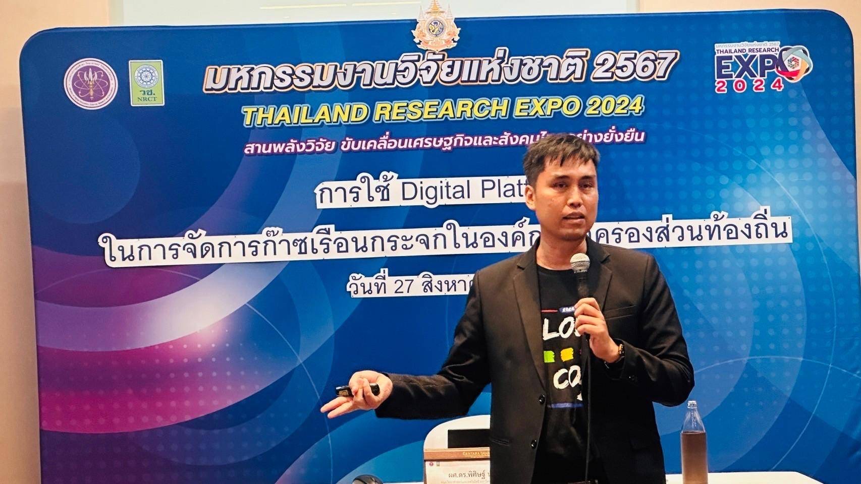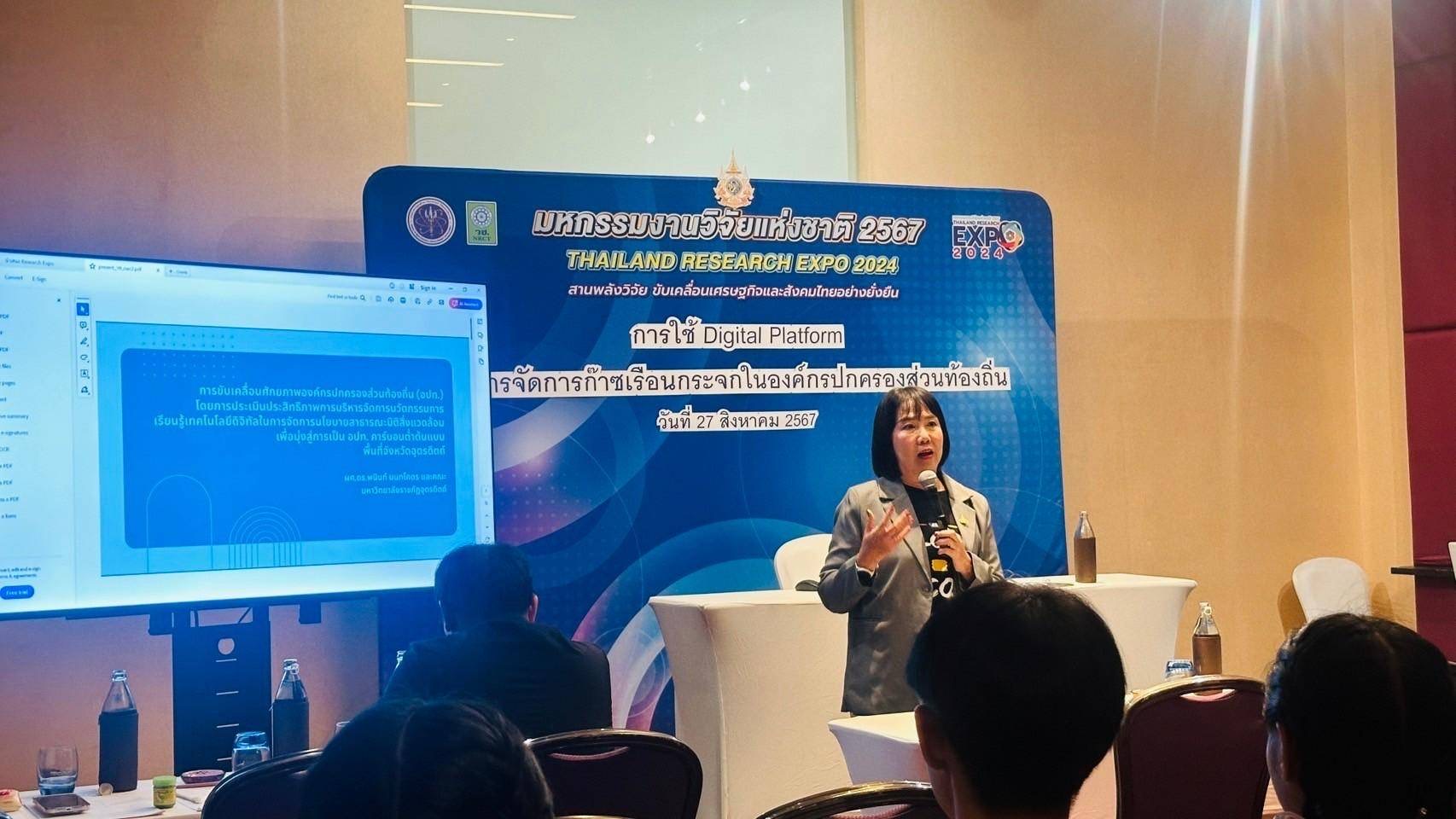 วันที่ 27 สิงหาคม 2567 คณะนักวิจัยจากโครงการวิจัย การพัฒนานวัตกรรมการเรียนรู้เทคโนโลยีดิจิทัลในการจัดการนโยบายสาธารณะมิติสิ่งแวดล้อมเพื่อมุ่งสู่การเป็น อปท.คาร์บอนต่ำต้นแบบพื้นที่จังหวัดอุตรดิตถ์ นำโดย ผศ.ดร.ชาติทนง โพธิ์ดง รอง ผอ.สวพ. ผศ.ปริญญา ไกรวุฒินันท์ รองคณบดี คณะวิทยาศาสตร์และเทคโนโลยี ผศ.ดร.พนินท์ นนทโคตร คณะวิทยาการจัดการ และ ผศ.ดร.พิศิษฐ์ นาคใจ คณะวิทยาศาสตร์และเทคโนโลยี เป็นตัวแทนมหาวิทยาลัยในการนำเสนอผลงานวิจัย ในห้องประชุมเฉพาะเรื่อง ประเด็น การใช้ Digital Platform ในการจัดการก๊าซเรือนกระจกในองค์กรปกครองส่วนท้องถิ่น ณ ห้อง Lotus 13 เวลา 09.00 - 12.00 น. ในงานนี้มีนักวิชาการ และนักเรียนนักศึกษาร่วมแลกเปลี่ยนในห้องประชุมกว่า 30 คน