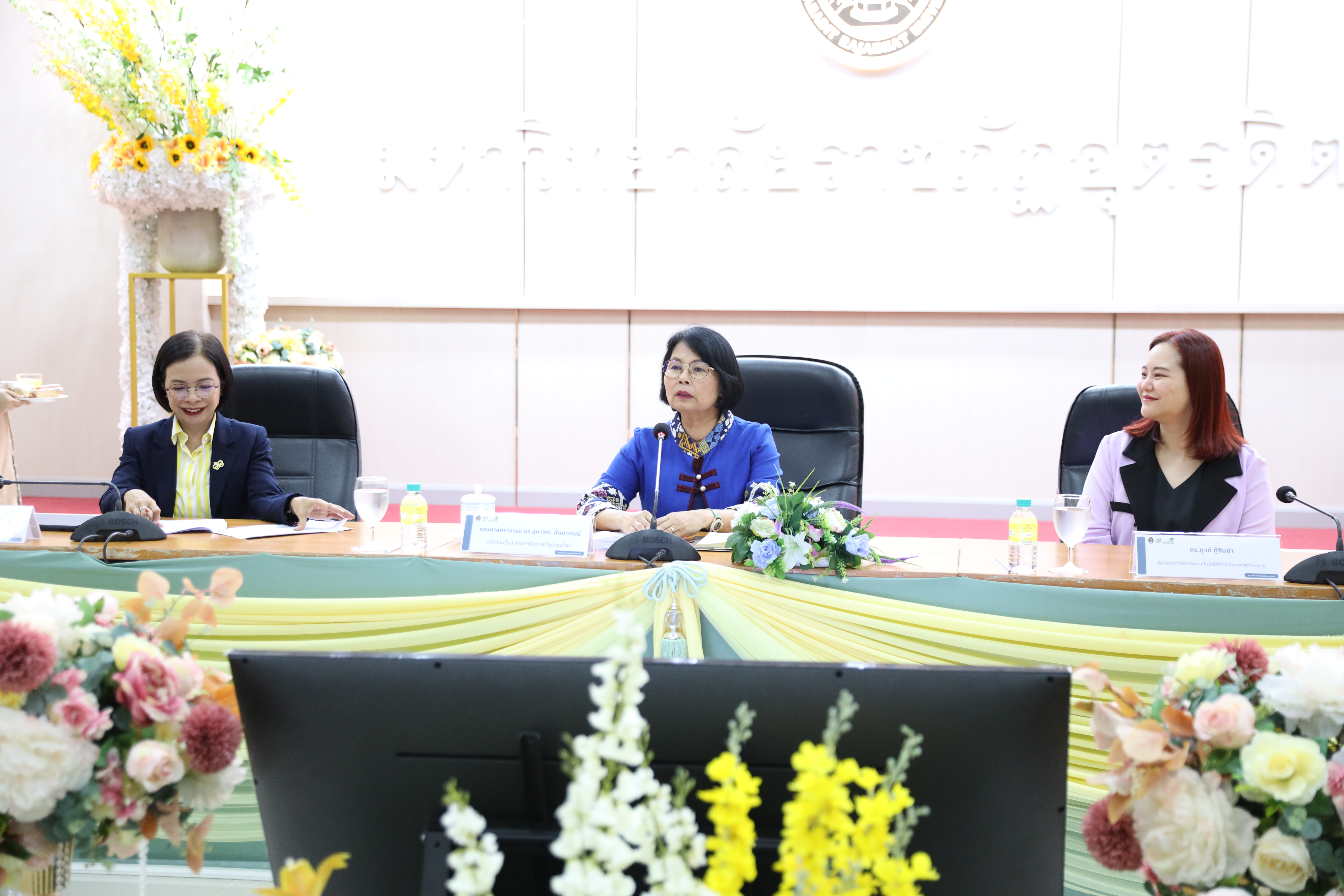 วันที่ 25 พฤศจิกายน พ.ศ.2567 รองศาสตราจารย์ ดร.สุภาวิณี สัตยาภรณ์ อธิการบดีและคณะผู้บริหารมหาวิทยาลัยราชภัฏอุตรดิตถ์ ร่วมต้อนรับ คณะผู้แทนจากกรมวิทยาศาสตร์บริการ ซึ่งนำโดย ดร.ภูวดี ตู้จินดา ผู้อำนวยการสถาบันเทคโนโลยีดิจิทัลวิทยศาสตร์บริการ และ ดร.ศันศนีย์ บุญสาลี ผู้อำนวยการศูนย์บริหารจัดการข้อมูลวิทยาศาสตร์และผู้แทนจากกรมวิทยาศาสตร์บริการ เพื่อหารือแนวทางความร่วมมือการพัฒนาตรวจสอบและรับรองในพื้นที่ : ภาคเหนือตอนล่าง ณ มหาวิทยาลัยราชภัฏอุตรดิตถ์ ภาพ/ข่าว PR URU