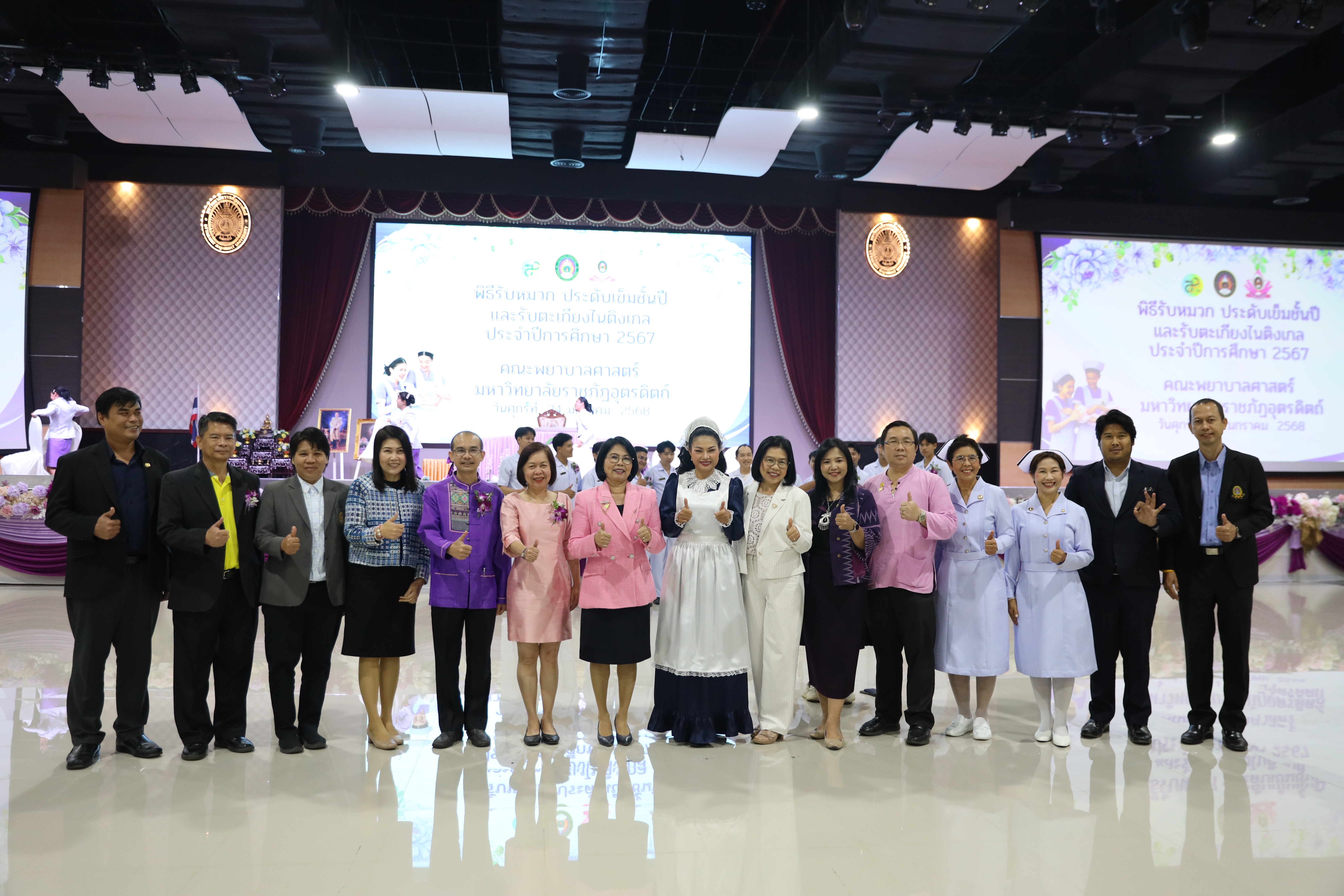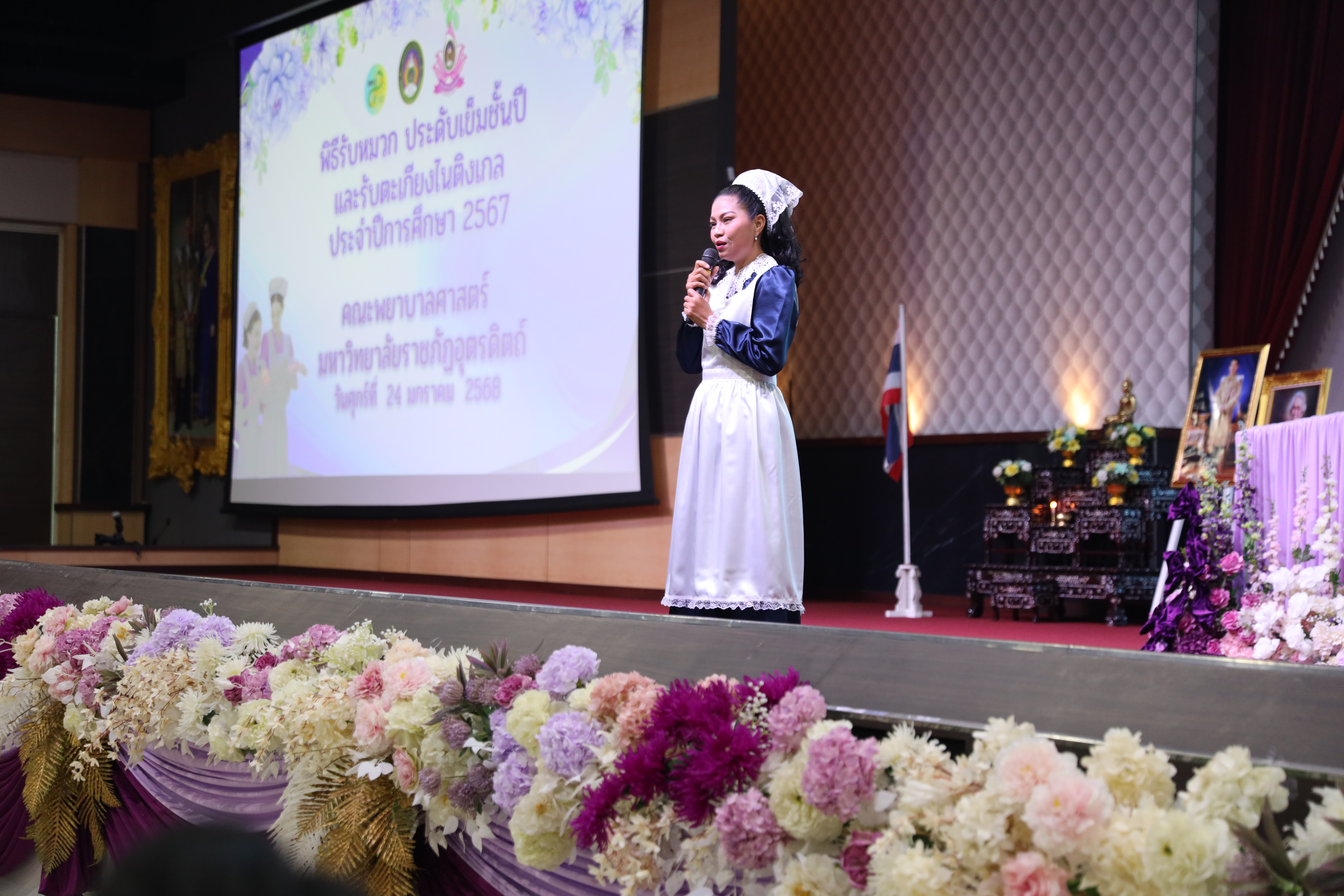 วันที่ 24 มกราคม 2568 คณบดีคณะพยาบาลศาสตร์ มหาวิทยาลัยราชภัฏอุตรดิตถ์ จัดพิธีรับหมวก ประดับเข็มชั้นปี และพิธีรับตะเกียงไนติงเกลนักศึกษาชั้นปีที่ 2 ปีการศึกษา 2567 คณะพยาบาลศาสตร์ ณ ห้องประชุมมหาวิทยาลัยราชภัฏอุตรดิตถ์ เขตทุ่งกะโล่ โดยได้รับเกียรติจาก รองศาสตราจารย์ ดร.สุภาวิณี สัตยาภรณ์ อธิการบดีมหาวิทยาลัยราชภัฏอุตรดิตถ์ เป็นประธาน ในพิธีรับมอบหมวก และประดับเข็มชั้นปี ให้กับนักศึกษาชั้นปีที่ 2 และพิธีการรับตะเกียง ไนติงเกล เพื่อให้นักศึกษาพยาบาล ชั้นปีที่ 2 เกิดความภาคภูมิใจและทัศนคติที่ดีต่อวิชาชีพพยาบาล และได้รับเกียรติจาก รศ.ดร.พินิติ รตะนานุกูล ท่านนายกสภามหาวิทยาลัย ได้ให้โอวาทแก่นักศึกษา และท่านผู้บริหารมหาวิทยาลัยฯ ศาสตราจารย์เกียรติคุณ ดร.อนุรักษ์ ปัญญานุวัฒน์ ผู้ทรงคุณวุฒิสภามหาวิทยาลัยราชภัฏอุตรดิตถ์ อาจารย์ อภิชา อินสุวรรณ ท่านอธิการบดีมหาวิทยาลัยพายัพผศ.ดร. วัลลภา ทรงพระคุณ รองอธิการบดีฝ่ายวิชาการและวิจัย มหาวิทยาลัยพายัพ และคณบดีคณะพยาบาลศาสตร์ แมคคอร์มิค สถาบันพี่เลี้ยงคณะพยาบาลศาสตร์ขอขอบคุณ เป็นก้าวแรกของการก้าวเข้าสู่วิชาชีพพยาบาล เป็นประเพณีสำคัญซึ่งถือปฏิบัติก่อนการขึ้นฝึกปฏิบัติงานที่แสดงถึงเอกลักษณ์ในวิชาชีพพยาบาล เพื่อเป็นการเตรียมความพร้อมของนักศึกษาเข้าสู่วิชาชีพทางการพยาบาล เป็นนักศึกษาพยาบาลที่จะให้การปฏิบัติการพยาบาล ดูแลผู้ป่วยในสถานการณ์จริง ภาพ/ข่าว PR URU