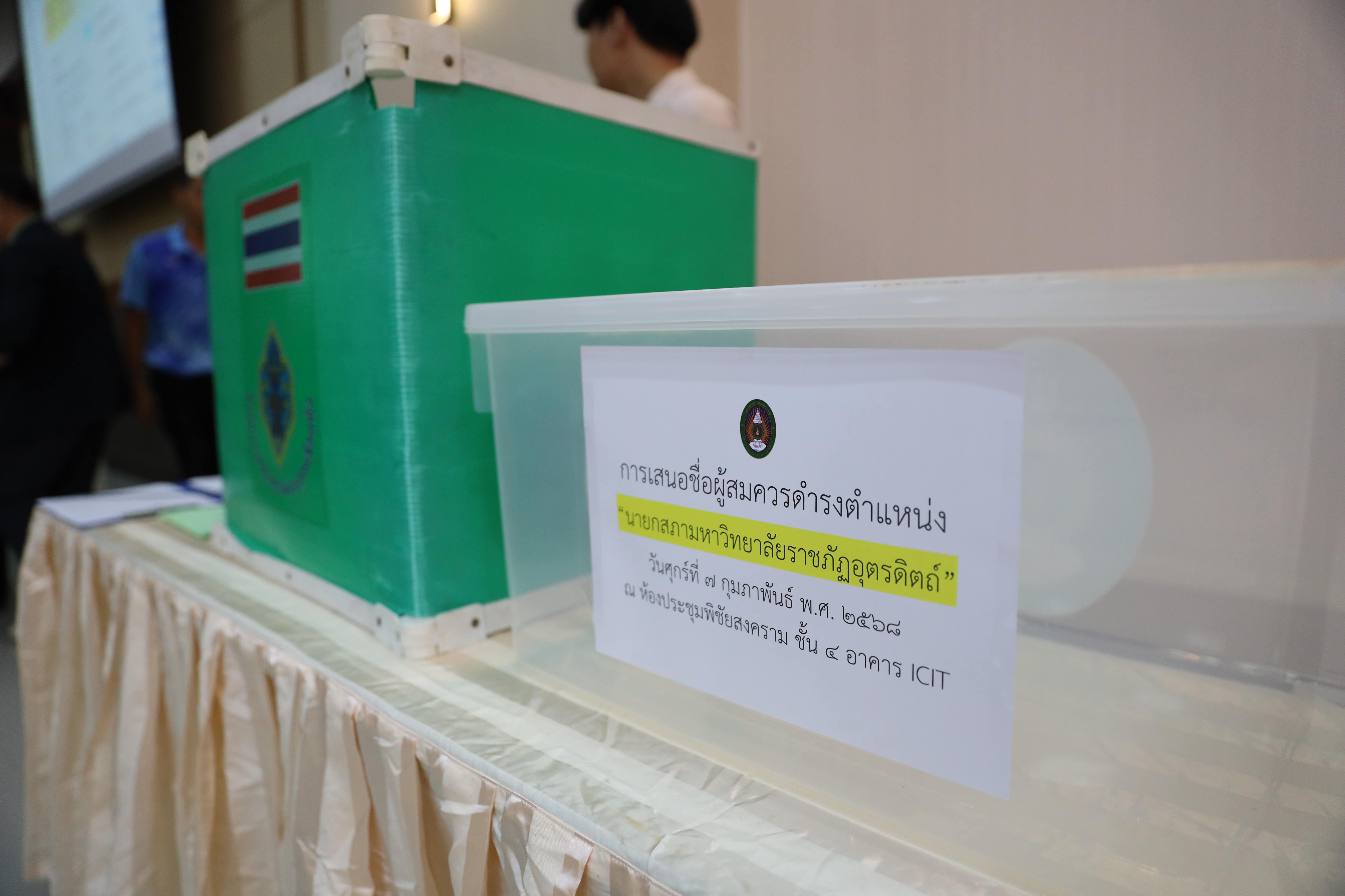 มหาวิทยาลัยราชภัฏอุตรดิตถ์ จัดการประจัดประชุมสภามหาวิทยาลัย ครั้งที่ 2/2568 โดยมี รศ. ดร.พินิติ รตะนานุกูล นายกสภามหาวิทยาลัยราชภัฏอุตรดิตถ์ เป็นประธานในการประชุม โดยในการประชุมครั้งนี้สภามหาวิทยาลัยได้ดำเนินการเลือกผู้สมควรดำรงตำแหน่งนายกสภามหาวิทยาลัยราชภัฏอุตรดตถ์ จากการลงคะแนนเลือก ที่ประชุมมีมติเป็นเอกฉันท์ให้ รองศาสตราจารย์ ดร.พินิติ รตะนานุกูล เป็นผู้สมควรดำรงตำแหน่งนายกสภามหาวิทยาลัยราชภัฏอุตรดตถ์ และมอบหมายให้มหาวิทยาลัยนำเสนอโปรดเกล้าฯ แต่งตั้ง ต่อไป ณ ห้องประชุมพิชัยสงคราม ชั้น 4 อาคาร ICIT มหาวิทยาลัยราชภัฏอุตรดิตถ์