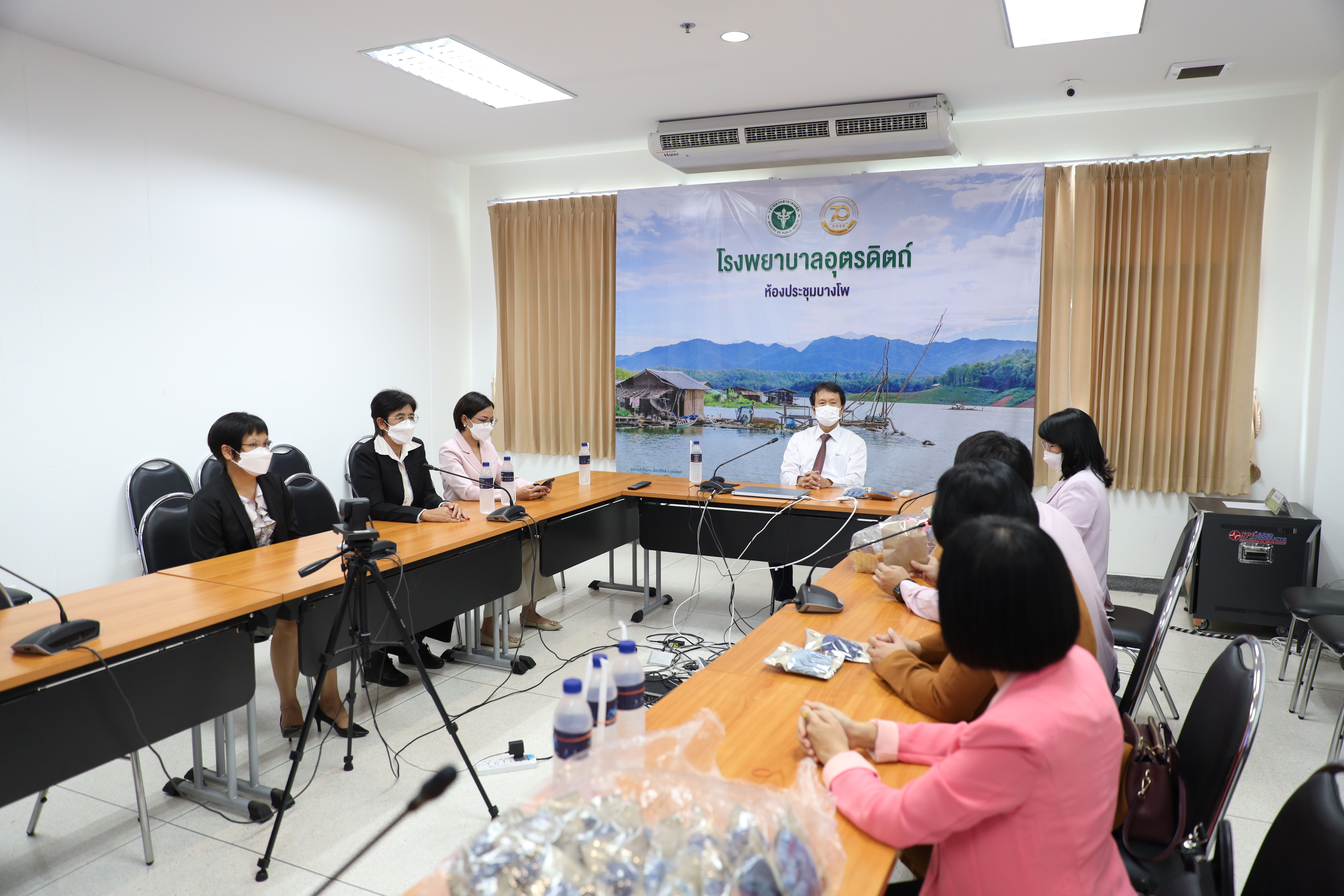 มหาวิทยาลัยราชภัฏอุตรดิตถ์ นำโดย รองศาสตราจารย์ ดร.สุภาวิณี สัตยาภรณ์ อธิการบดี และคณะผู้บริหาร ร่วมบริจาค “ชุดฝึกกล้ามเนื้อ สำหรับผู้ป่วยกล้ามเนื้ออ่อนแรง“ ให้กับโรงพยาบาลอุตรดิตถ์ และ โรงพยาบาลพิชัยดาบหัก จำนวนโรงพยาบาลละ 250 ชุด โดยมี นายแพทย์อายุส ภมะราภา ผู้อำนวยการโรงพยาบาลอุตรดิตถ์ และ พันเอกสุรวุฒิ เอื้อคณิต ผู้อำนวยการโรงพยาบาลค่ายพิชัยดาบหัก รับมอบชุดฝึกกล้ามเนื้อ ซึ่งชุดฝึกกล้ามเนื้อมือสำหรับผู้ป่วยกล้ามเนื้ออ่อนแรงนั้น เป็นผลิตภัณฑ์จากการพัฒนา ภายใต้แผนงานการส่งเสริมการนำนวัตกรรมไปใช้ประโยชน์ในพื้นที่เพื่อพัฒนาสังคมและชุมชน และยังได้รับสนับสนุนชุดฝึกกล้ามเนื้อ สำหรับผู้ป่วยกล้ามเนื้ออ่อนแรง โดยอุทยานวิทยาศาสตร์ภาคเหนือมหาวิทยาลัยราชภัฎอุตรดิตถ์