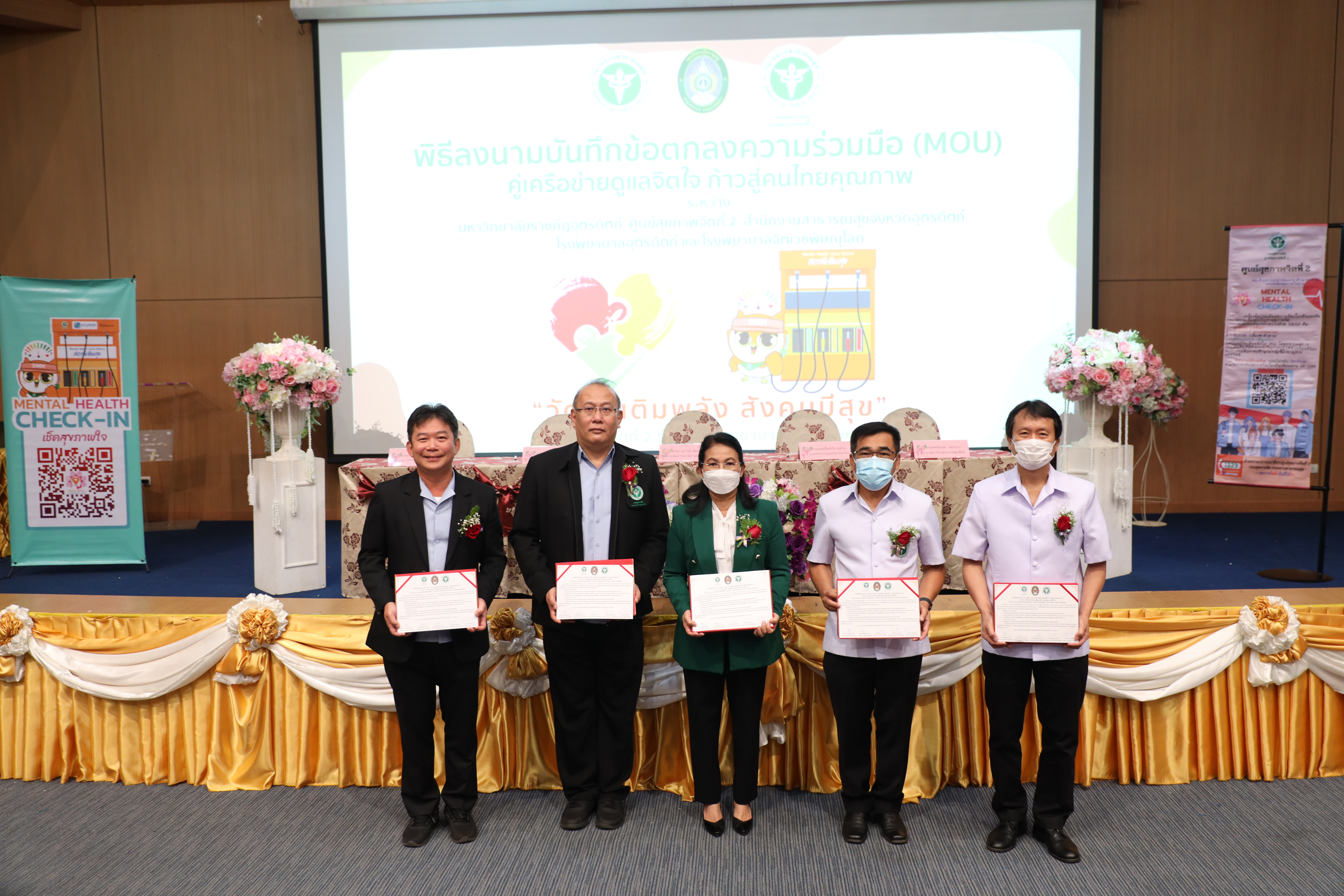 มหาวิทยาลัยราชภัฏอุตรดิตถ์ ร่วมกับสำนักงานสาธารณสุขจังหวัดอุตรดิตถ์ ศูนย์สุขภาพจิตที่ 2 กรมสุขภาพจิต กระทรวงสาธารสุข จัดพิธีลงนามความร่วมมือโครงการคู่เครือข่ายดูแลจิตใจ ก้าวสู่คนไทยคุณภาพ ณ ห้อง FMF 102 อาคารคณะวิทยาการจัดการ โดยมี รศ.ดร.สุภาวสิณี สัตยาภรณ์ อธิการบดีมหาวิทยาลัยราชภัฏอุตรดิตถ์ กล่าวต้อนรับผู้เข้าร่วมกิจกรรมและกล่าวรายงานถึงวัตถุประสงค์โดย นายชูพงษ์ สังข์ผลิพันธ์ ผู้อำนวยการศูนย์สุขภาพจิตที่ 2 ซึ่งการบันทึกข้อตกลงครั้งนี้ มีวัตถุประสงค์ เพื่อผลักดันการขับเคลื่อนการดำเนินงานดูแลช่วยเหลือทางด้านจิตใจนักศึกษาให้ครอบคลุมมหาวิทยาลัยราชภัฏทุกแห่ง ร่วมถึงบูรณาการการทำงานร่วมกันระหว่างหน่วยงานที่เกี่ยวข้องในสังกัดกระทรวงสาธารณสุขและมหาวิทยาลัยราชภัฏในแต่ละเขตสุขภาพ