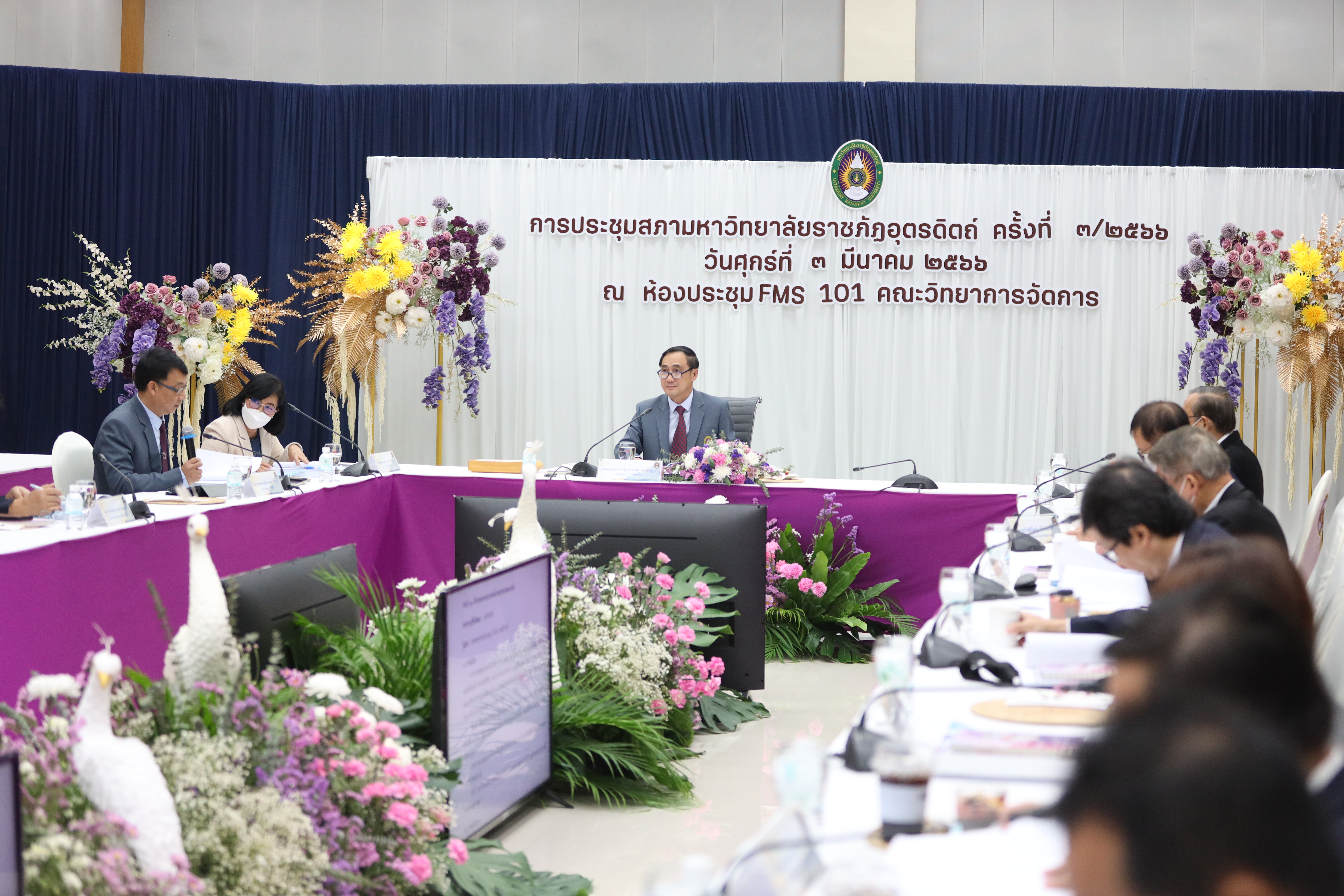 วันที่ 3 มีนาคม 2566 มหาวิทยาลัยราชภัฏอุตรดิตถ์ จัดประชุมสภามหาวิทยาลัย ครั้งที่ 3/2566 โดยมี รองศาสตราจารย์ ดร.พินิติ รตะนานุกูล นายกสภามหาวิทยาลัย เป็นประธาน ณ ห้องประชุม FMS 101 คณะวิทยาการจัดการ ม.ราชภัฏอุตรดิตถ์