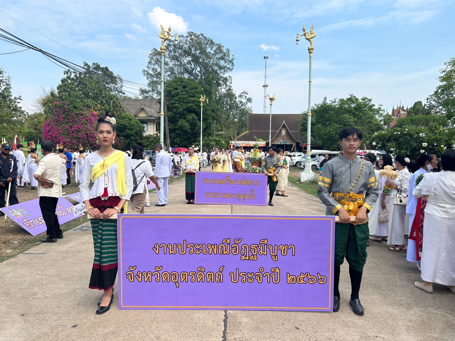 URU NEWS 11 มิถุนายน 2566 มหาวิทยาลัยราชภัฏอุตรดิตถ์ ร่วมขบวนงานอัฐมีบูชา ประจำปี 2566 ของวัดพระบรมธาตุทุ่งยั้ง นำโดย อาจารย์ ดร.นภาภรณ์ จันทร์สี ผู้ช่วยอธิการบดี พร้อมด้วยบุคลากรกองพัฒนานักศึกษา และตัวแทนนักศึกษามหาวิทยาลัยราชภัฏอุตรดิตถ์ ร่วมขบวนงานอัฐมีบูชา อีกทั้งอาจารย์และนักศึกษา สาขาวิชานาฏศิลป์ คณะครุศาสตร์ ร่วมจัดรูปขบวน โดยมีขบวนเครื่องนมัสการพระบรมธาตุ ขบวนเทิดพระเกียรติ และขบวนอัญเชิญผ้าห่มพระบรมธาตุ โดยเริ่มขบวนจากวัดทองเหลือ มายังวีดพระบรมธาตุ(ทุ่งยั้ง) อ.ลับแล จ.อุตรดิตถ์ ข่าว/PR.URU ภาพ/กองพัฒนานักศึกษา