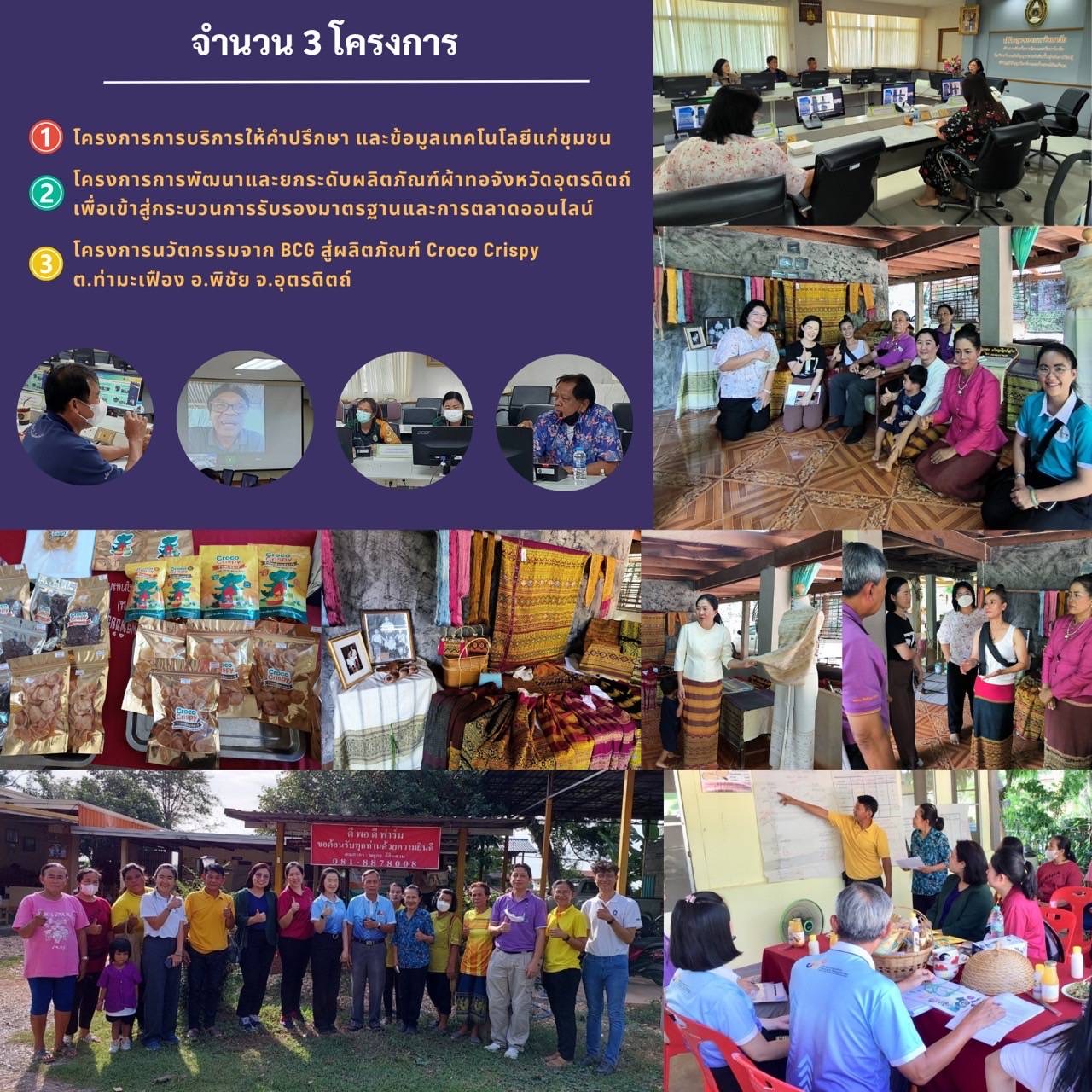 วันที่ 18 - 19 สิงหาคม 2566 คลินิกเทคโนโลยี มรอ. เข้ารับการตรวจติดตามความก้าวหน้าการดำเนินโครงการ ภายใต้กิจกรรมส่งเสริมการนำวิทยาศาสตร์ เทคโนโลยีและนวัตกรรม เพื่อเพิ่มศักยภาพการผลิตและเศรษฐกิจชุมชน ประจำปีงบประมาณ 2566 จำนวน 3 โครงการ นำโดย รองศาสตราจารย์ ดร.สุภาวิณี สัตยาภรณ์ อธิการบดีมหาวิทยาลัยราชภัฏอุตรดิตถ์ คณะผู้บริหาร อว.ส่วนหน้า และผู้ช่วยศาสตราจารย์ ดร.จันทร์เพ็ญ ชุมแสง ผู้อำนวยการคลินิกเทคโนโลยี พร้อมด้วยอาจารย์หัวหน้าโครงการ ตัวแทนกลุ่ม ผู้ประกอบการ และตัวแทนเกษตรผู้รับคำปรึกษา ณ มหาวิทยาลัยราชภัฏอุตรดิตถ์ และลงพื้นที่กลุ่มผู้ประกอบการที่อำเภอลับแล จังหวัดอุตรดิตถ์ และอำเภอพิชัยจังหวัดอุตรดิตถ์ โดยมีคณะกรรมการจาก สป.อว. เป็นผู้ตรวจติดตามและประเมินโครงการฯ ในการนี้คณะกรรมการได้ให้ข้อเสนอแนะแก่ทางผู้รับผิดชอบโครงการ? เพื่อให้บรรลุตามวัตถุประสงค์?ต่อไป . . . ภาพ/ข่าว : คลินิกเทคโนโลยีมหาวิทยาลัยราชภัฏอุตรดิตถ์